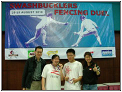 ![]() | Fencing Singapore Novices (Open) Championships February 2011We like to congratulate all our Z Fencers who achieved Top 8 and the following fencers for their medal winning performance in the Fencing Singapore Novices Championships 2011 Women's Team Foil - Gold Individual Men's Foil - Silver Individual Women's Foil - Bronze Individual Men's Epee - Bronze |